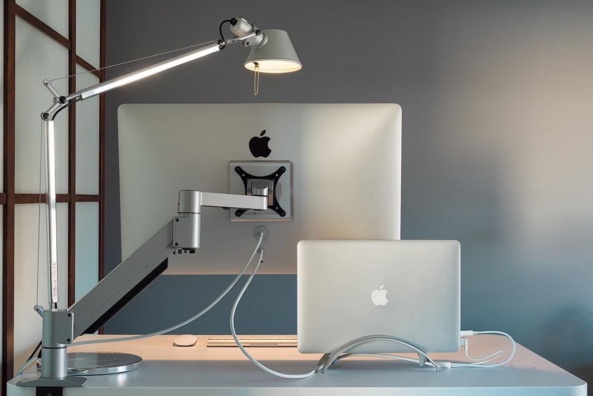 Безусловно, рабочее место дня, постоянство дня и минимализм дня. По словам автора, еще в 2013 году он собрал себе такое рабочее место и с тех пор почти не изменяет ему. Ну разве что Мак сменился на более свежий. Ну а если кто-то захотел себе такую же лампу, то это Artemide Tolomeo (привет легендам и мифам Древней Греции). @fixed