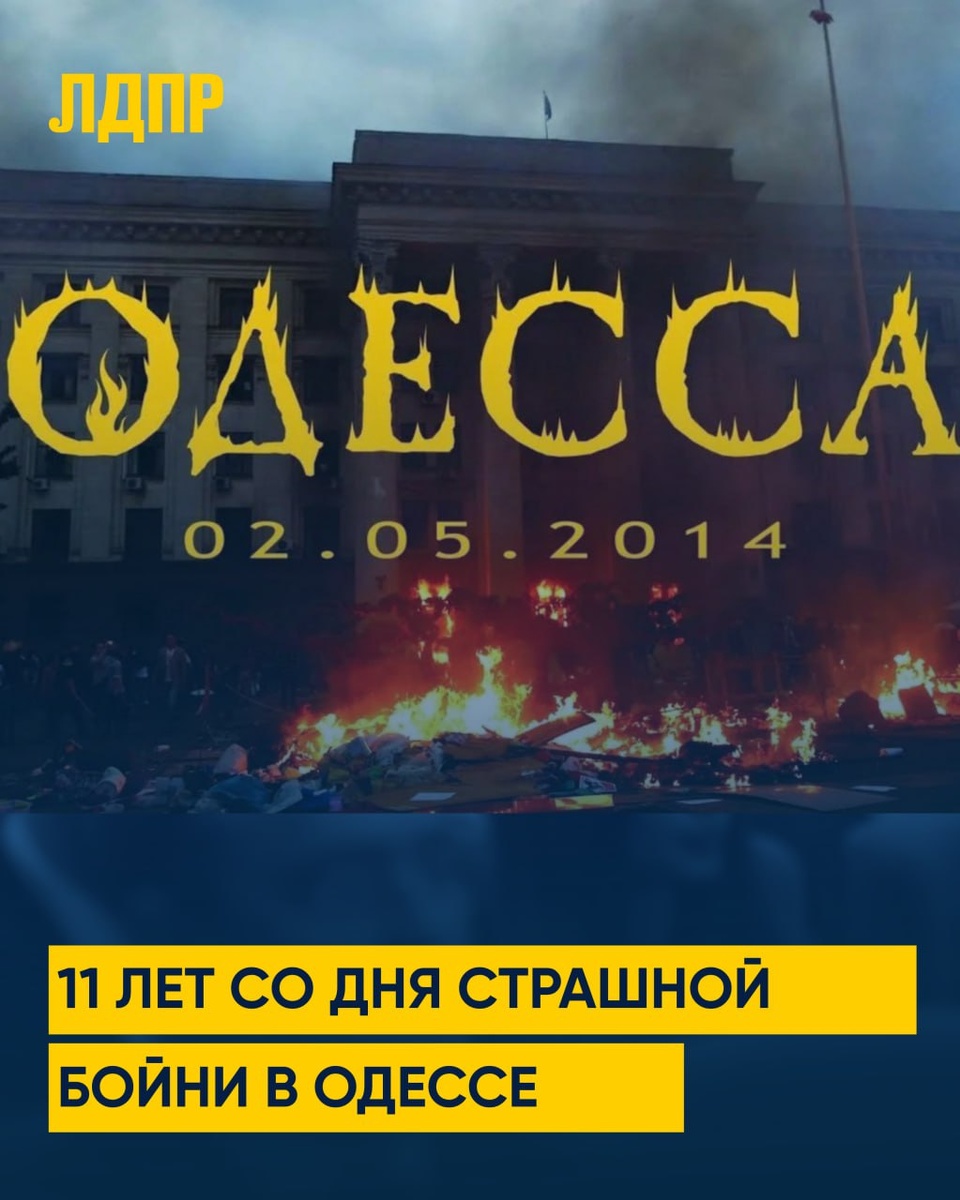 11 лет трагедии в Одессе ✅ 2 мая 2025 года исполняется 11 лет со дня страшной трагедии в Одессе, унёсшей десятки жизней. В этот день в Доме профсоюзов произошла трагедия, унесшая жизни десятков людей. Эта бойня стала одной из самых мрачных страниц современной истории. Тогда на месте расправы погибли 42 человека и более 250 пострадали, из них один подросток и семь женщин. ✨✨✨ Ростовское региональное отделение ЛДПР выражает глубокие соболезнования родственникам и друзьям погибших, разделяя их скорбь и боль. Эта трагедия – незаживающая рана, которая напоминает о необходимости беречь мир и согласие в обществе. Светлая память о каждом, кто погиб от рук нацистов в тот день, будет вечным огнем пылать в сердце народа. Помним, скорбим… Дорогие подписчики, благодарим Вас за поддержку! Ваши реакции, приглашения друзей и репосты позволяют нам развиваться. Не забывайте ставить 👍👍👍