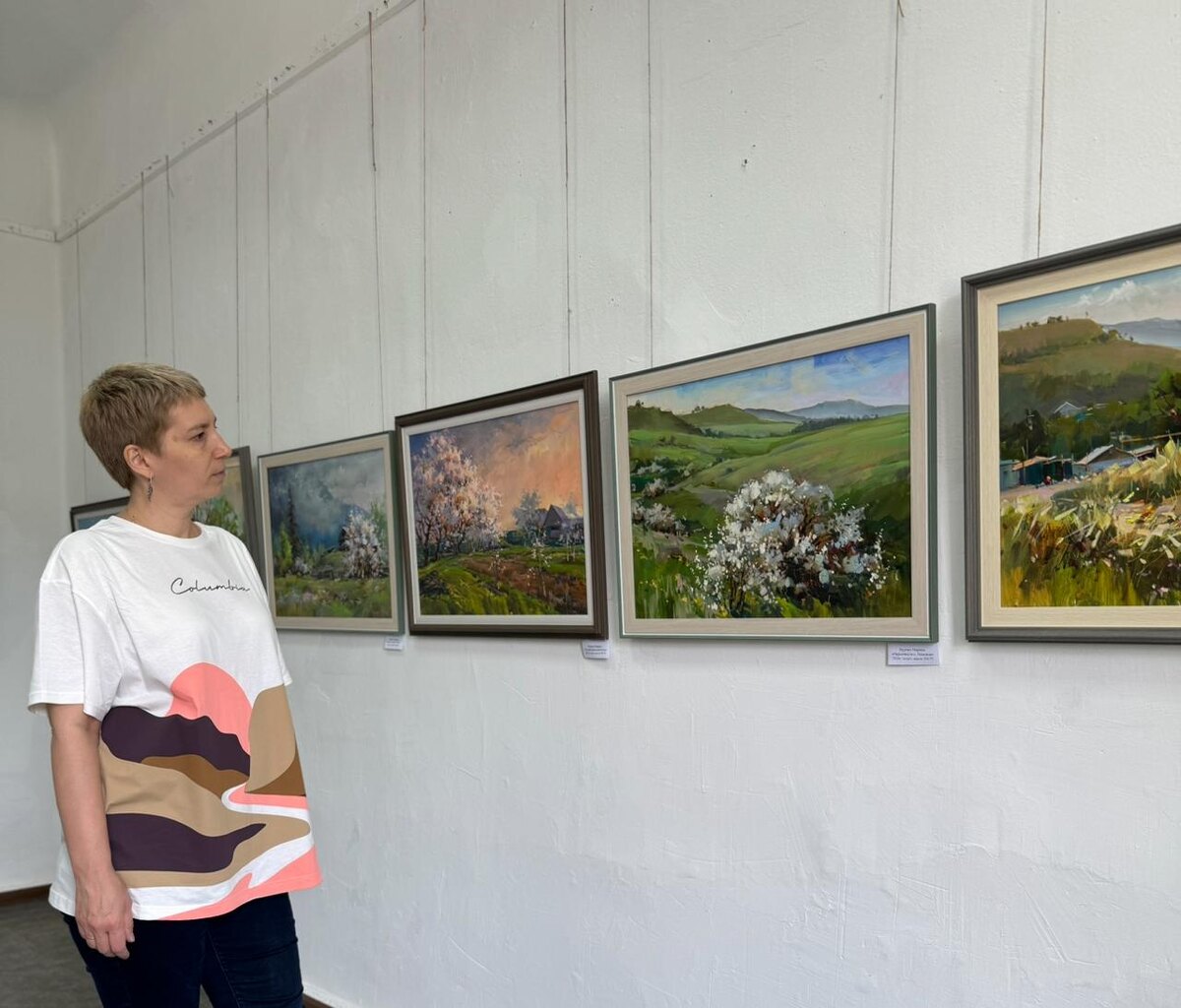 Пейзажи, написанные маслом, яркие, запоминающиеся. Особенно понравились две работы: «Весна в горах» и «Теплый апрельский вечер».