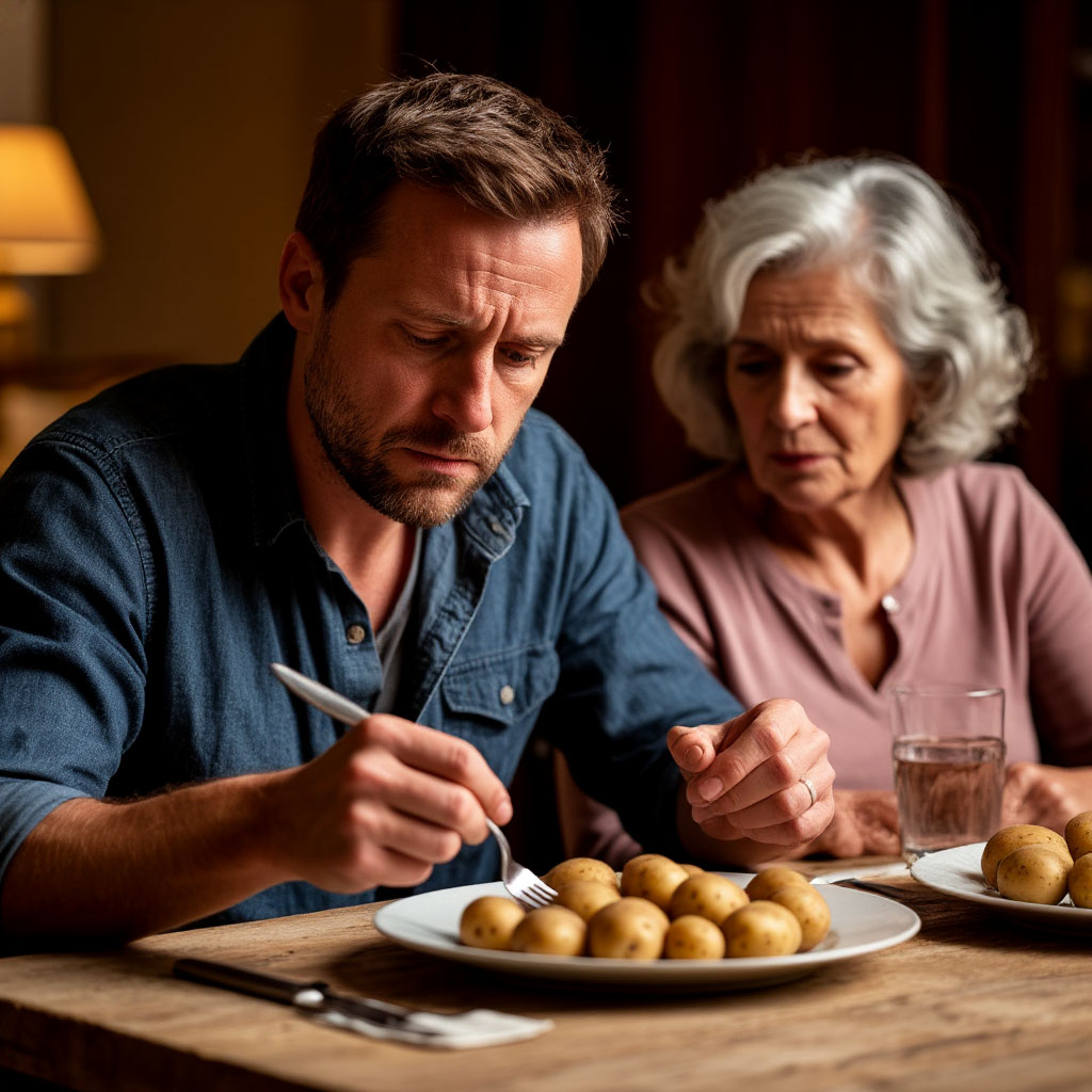 Сегодня всё не так. За столом, кроме меня, только Андрей. Мой старший — сидит неловко, ковыряет вилкой картошку, будто в ней спрятан клад. Молчит. Я пытаюсь его разговорить — а что сказать? Погода холодная, у меня на душе тоже… пустота. Курица, которой раньше хватало на шестерых и на следующий день, теперь лежит, как памятник ушедшим временам. Вот и вся наша нынче компания — да ещё тихие настенные часы, которые всегда бьют слишком громко, когда в доме мало людей.