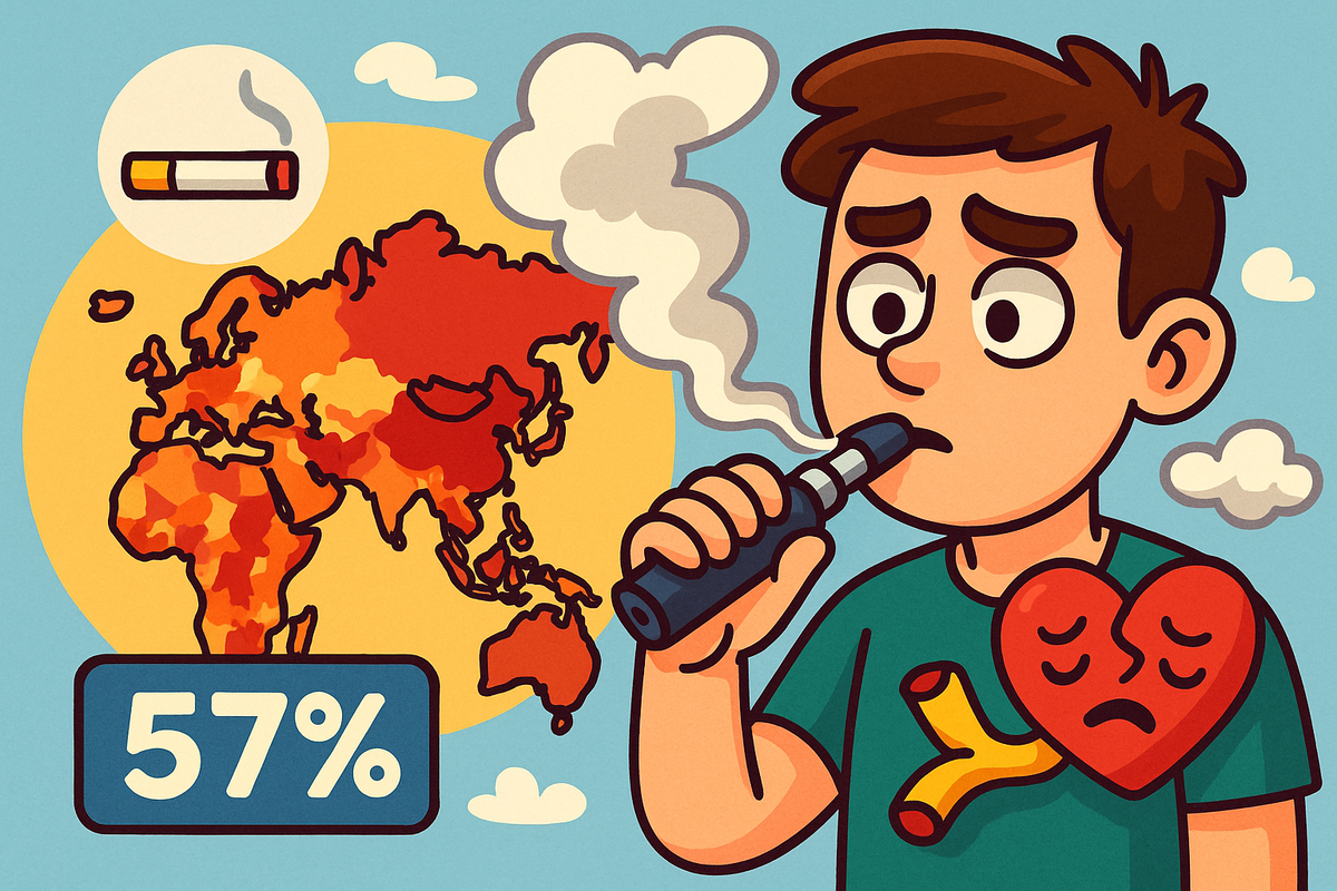 Вот так выглядит карта мира по количества выкуриваемых сигарет на душу населения. РФ занимает тут лидирующие позиции. Курение сигарет – это один из основных факторов риска развития сердечно-сосудистых заболеваний, сокращающих продолжительность жизни в среднем на 10 лет. А отказ от курения сигарет, наверное, лучшее, что курильщик может сделать для собственного здоровья. Это полезно сделать в любом возрасте, но чем раньше – тем лучше. И в этом исследование 57% опрошенных курильщиков считают, что электронные сигареты вреднее или сопоставимо по вредности курению сигарет аналоговых. Хотя для злостных курильщиков, временный переход на электронные сигареты может быть одной из стратегий отказа от курения. Ведь не так много эффективных способов, которые помогут человеку, курившему 40 лет, взять и сразу перестать получать продукты горения в свои сосуды и легкие. Хотя до сих пор врачи и ученые очень осторожно пытаются ответить на вопрос – что вреднее электронные или обычные сигареты? Но новое кру