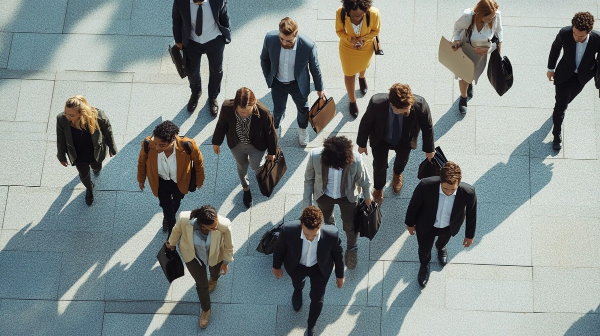 Создано на основе запроса: young multi ethnic business people group walking standing and top view illustration