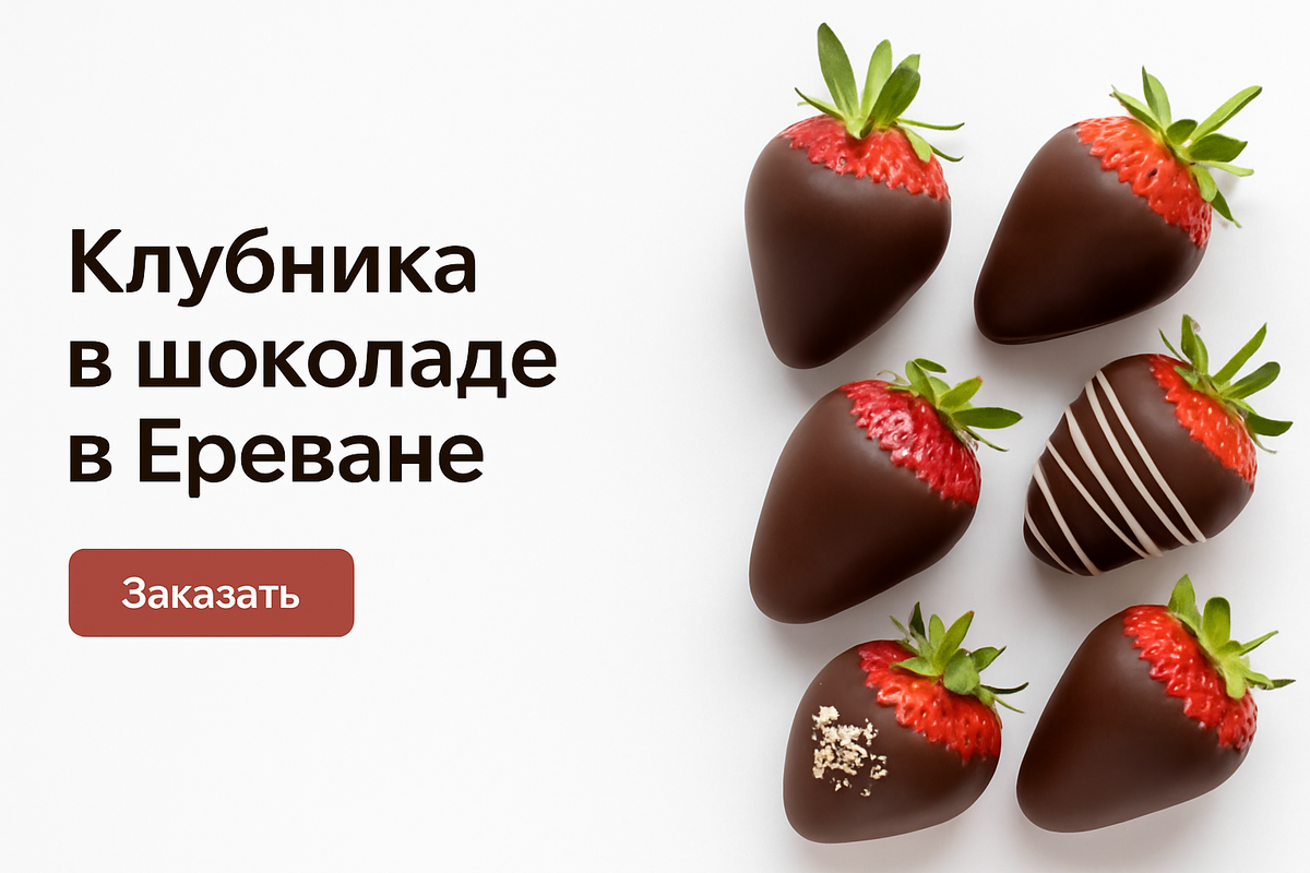 Вы можете заказать клубнику в шоколаде онлайн с доставкой по Еревану прямо на странице:
