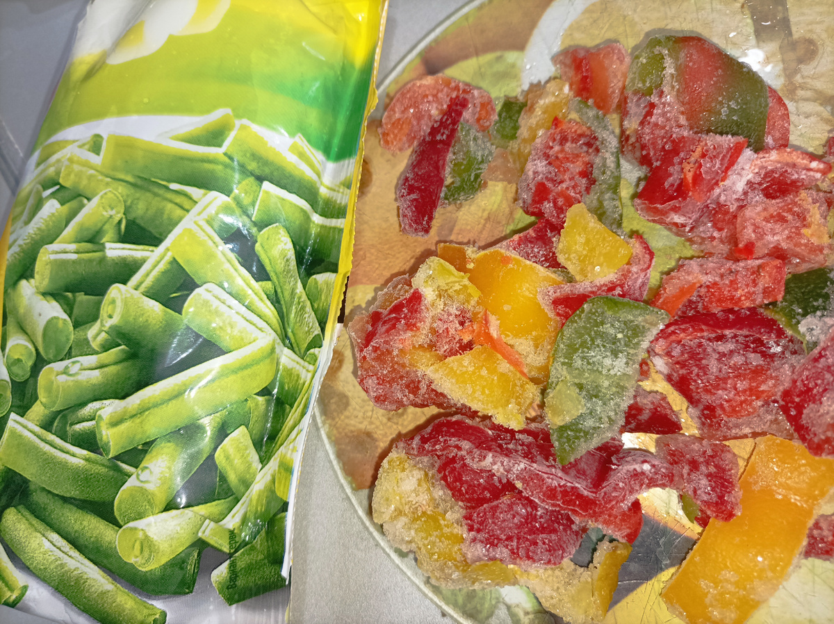 На ужин я раньше часто готовила стручковую фасоль с фаршем. Как правило, если остаётся небольшой кусочек фарша, например, после приготовления супа с фрикадельками или другого блюда, то я использую его в это блюдо. В этот раз у меня было немного фарша (смесь куриного и свиного), остаток стручковой фасоли. А ещё взгляд в морозилке упал на пакет с замороженным нарезанным перцем и помидорами🌶🫑🍅 Обычно я его использовала в овощное рагу и в омлеты. Подумала, что в этом блюде он будет идеален, и количество готового блюда увеличит, и в качестве овощей добавка не помешает. Обжарила лук, добавила фарш, морковь, немного обжарила (минут 5) и туда же отправила перцы. Из специй добавляла имбирь, приправу для фарша и универсальную приправу. После добавления стручковой фасоли жарила ещё около 5 минут. И овощи сохранили свою пользу, и блюдо осталось сочным и полезным. Ела как самостоятельное блюдо, хотя дома были свежие огурцы и консервированные помидоры, но уже ничего не хотелось добавлять.