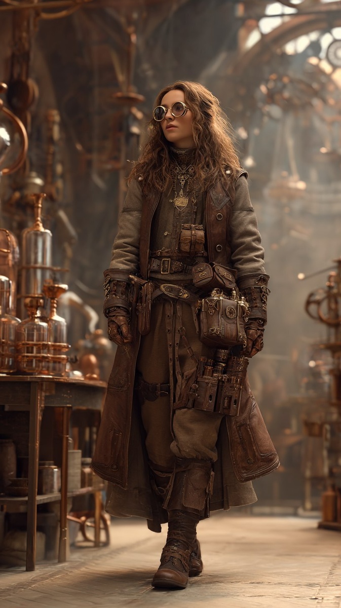 Создано на основе запроса: A full-body ultra-detailed photo of a steampunk worker, wearing layered leather gear, brass fittings, intricate belts and pouches, with long flowing hair and round brass-rimmed glasses. The character stands confidently in an industrial steampunk workshop filled with gears, copper pipes, and steam. 4k realism, cinematic lighting, soft shadows, high detail textures --- Автоперевод: Ультрализованная фотография всего тела, в которой работают у рабочего стимпанка, носящий слоистый кожаный шестерен, латунные фитинги, сложные ремни и мешочки, с длинными плавными волосами и круглыми латунными стеклами. Как тебе эта генерация? 🤔 https://dzen.ru/id/65c0c65c86e4f837c27b24d7 #ИИ #AI #нейросеть #midjourney #art