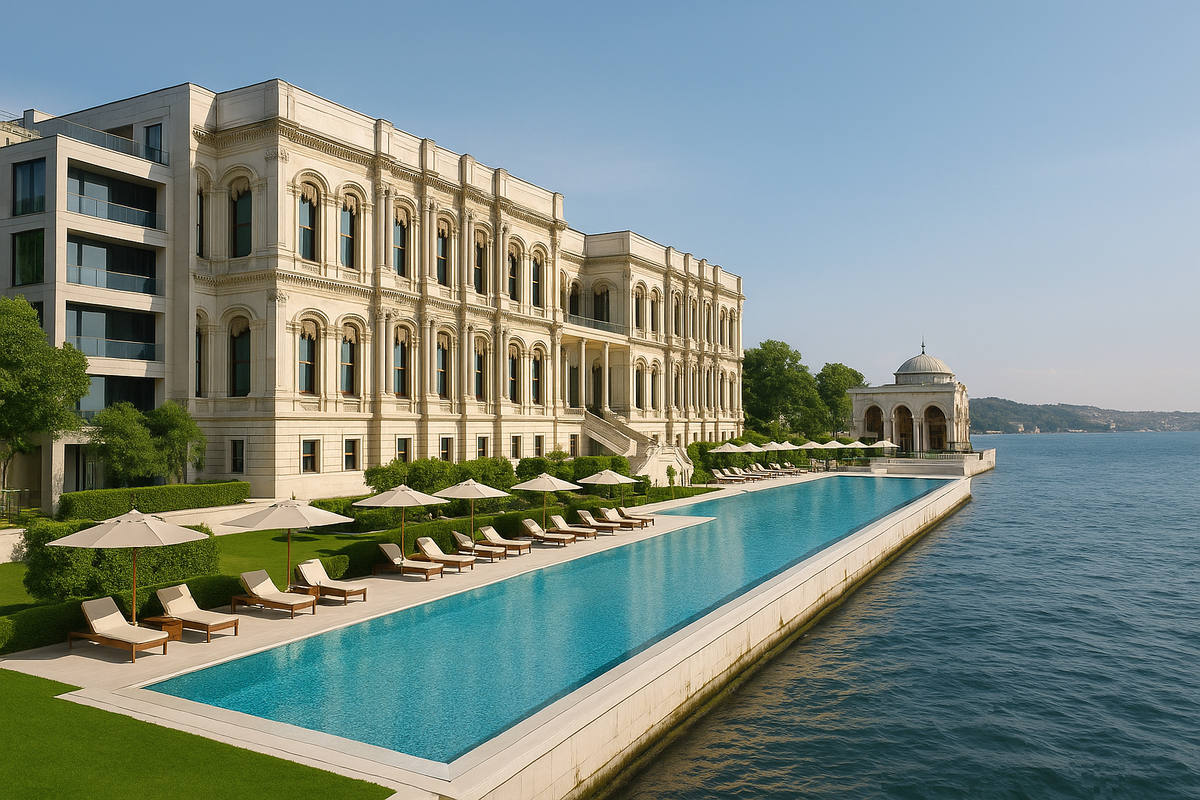 Отель расположен в историческом дворце на берегу Босфора, между районами Ортакёй и Бешикташ. Близость к основным достопримечательностям и роскошная атмосфера делают его популярным выбором среди туристов.