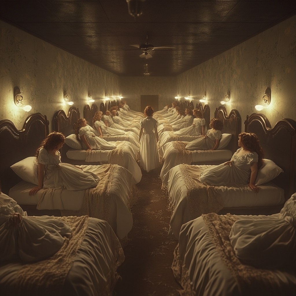 Создано на основе запроса: wide angle view of rows of square beds connected together by big dark brown headboards, tan bedspread, white pillows, on each bed is a beautiful female and male souls dressed in white surreal - --- Автоперевод: Широкологический вид рядов квадратных кроватей, соединенных большими темно -коричневыми изголовьями, коричневыми покрывами, белыми подушками, на каждой кровати - это красивая женщина -души, одетые в белые сюрреалистики - Как тебе эта генерация? 🤔 https://dzen.ru/id/65c0c65c86e4f837c27b24d7 #ИИ #AI #нейросеть #midjourney #art