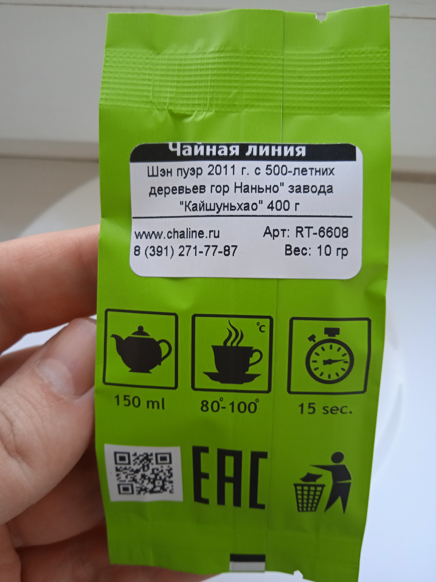 Китайский чай Шэн Пуэр 2011 года с 500-летних деревьев гор Наньно (南糯古樹, Nánnuò gǔ shù)