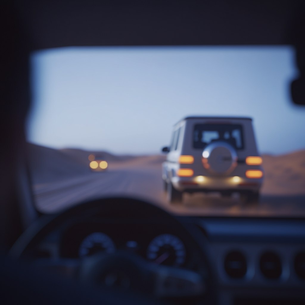 Создано на основе запроса: a man looks at the rear view window while driving a mercedes amg g63 with the reflection of another amg g63 in the rear view mirror. the camera angle is an over the shoulder shot showing the back of the man seated driving through the desert and the rear view mirror with reflection in it. high end automotive advertising --- Автоперевод: Человек смотрит на окно заднего вида во время управления Mercedes AMG G63 с отражением другого AMG G63 в зеркале заднего вида. Как тебе эта картинка? 🤔 https://dzen.ru/id/65c0c65c86e4f837c27b24d7 #ИИ #AI #нейросеть #midjourney #art