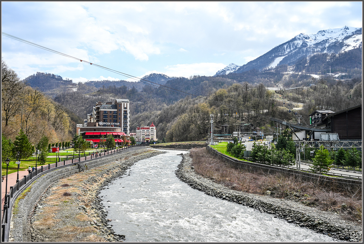 Когда был на фестивале на курорте «Роза Хутор», решил прогуляться пешком до «Красной Поляны» и посмотреть, был ли я прав, что никогда не хотел туда ехать. Прогулялся и понял, что я был прав... Покидаю «Роза Хутор» и направляюсь вдоль красивой набережной с крутыми, пусть и искусственными зелеными скульптурами, про которые уже писал. Однако красивая набережная уходит чуть дальше «хутора» и заканчивается, а дальше начинается реальность. Чтобы пройти между двумя курортами, надо преодолеть пару километров, но если вдоль ухоженной набережной и скульптур идти приятно, то чем ближе ты к «Красной Поляне» — приятность уходит. Остается одна тропинка под горой или топать вдоль дороги в пыли и рядом с машинами. Проход под горой, кстати, запрещен, но никого это не останавливает, потому что идти рядом с машинами по жаре мало кому может понравится. Так все и идут по «запретке», отодвинув ограждение и наплевав на запреты. Если в двух словах, то прогуливаться, кроме как по склонам «Красной Поляны», тут