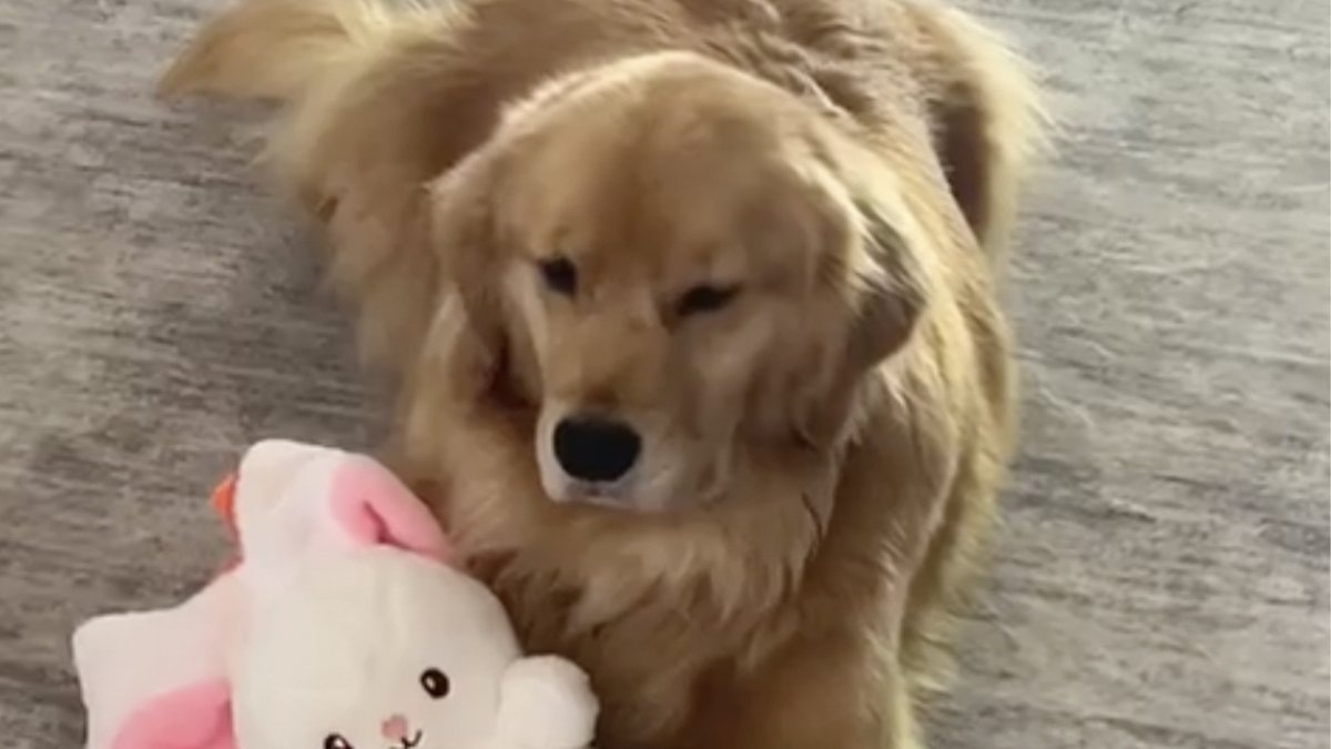 У собаки появился новый плюшевый малыш — ее щенок не в восторге