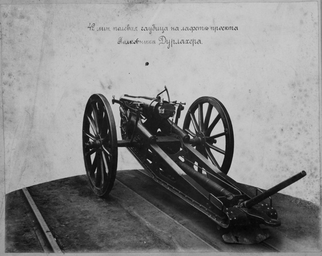 Заказ сделали, конечно, Круппу, который стал главным поставщиком артиллерии в русскую армию к этому моменту, и Обуховскому заводу, что у нас занимался стальными орудиями. Руководил процессом А.П. Энгельгардт. Ствол орудия выбрали немецкий с нарезкой обр. 1877 г. и с немецким же клиновым призматическим затвором. Новшества были в лафете, он как раз и был разработан Энгельгардтом. Немцы предлагали по-старинке доехать на колёсах и потом водрузить на специальную площадку. Деревянные лафеты тех лет при стрельбе с большими углами возвышения чувствовали себя плохо и быстро выходили из строя. На новой мортире применили каучуковые буфера, что частично гасили отдачу. Это позволяло быстро размещать мортиру на позиции, снизило её массу и сократило время возвращения орудий после выстрела на прежнее место. Таким образом, Россия первой получила тяжёлую полевую систему, годную для сопровождения пехоты огнём и манёвром.