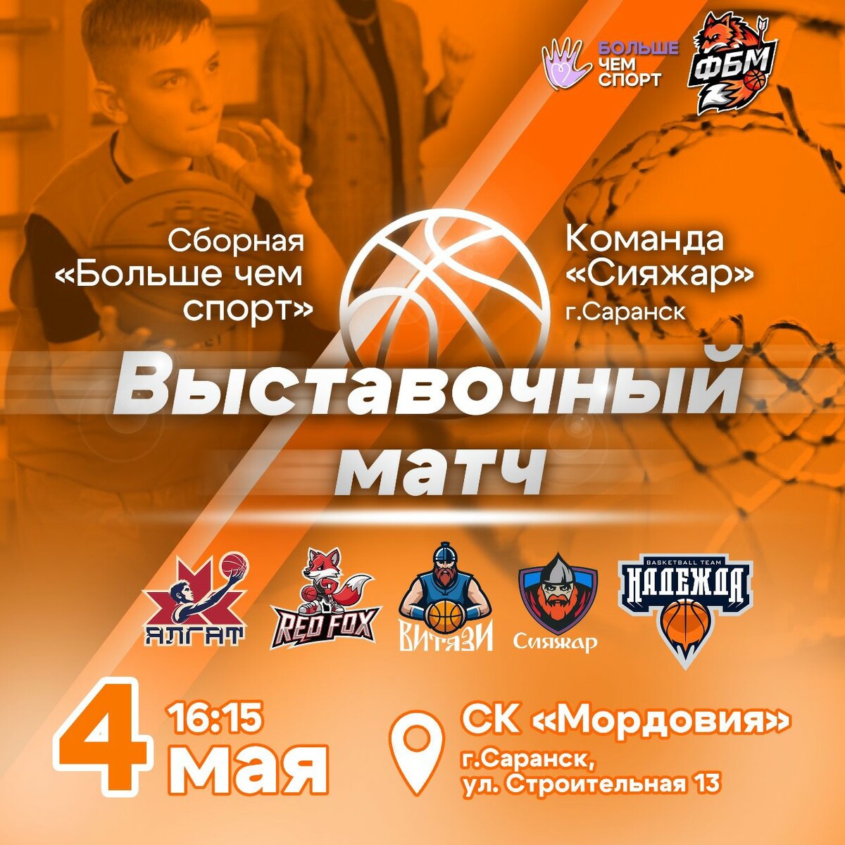 4 мая в рамках Всероссийских соревнований при поддержке Федерации баскетбола Республики Мордовия состоится закрытие спортивного сезона