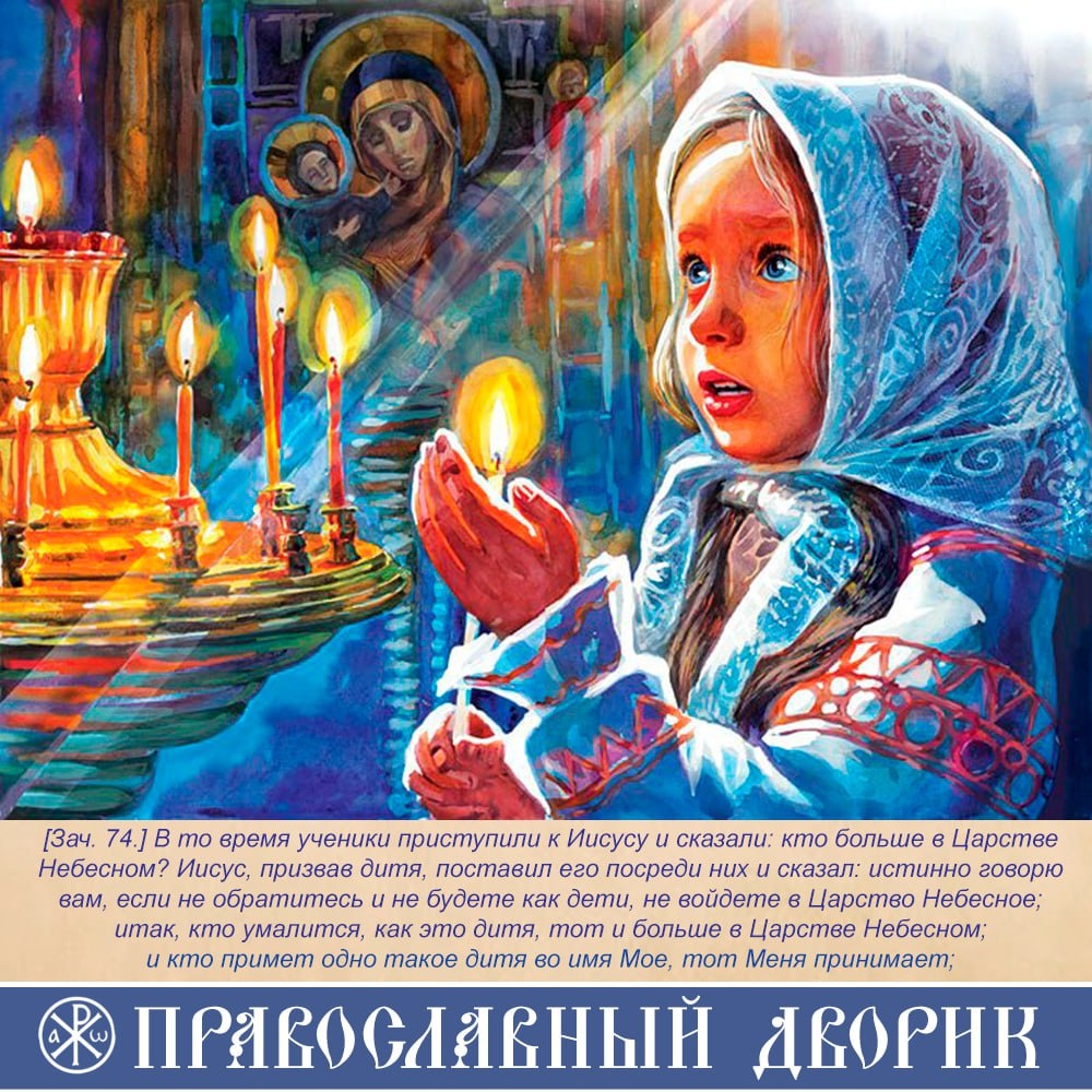 [Зач. 74.] В то время ученики приступили к Иисусу и сказали: кто больше в Царстве Небесном? Иисус, призвав дитя, поставил его посреди них и сказал: истинно говорю вам, если не обратитесь и не будете как дети, не войдете в Царство Небесное; итак, кто умалится, как это дитя, тот и больше в Царстве Небесном; и кто примет одно такое дитя во имя Мое, тот Меня принимает; а кто соблазнит одного из малых сих, верующих в Меня, тому лучше было бы, если бы повесили ему мельничный жернов на шею и потопили его во глубине морской. Горе миру от соблазнов, ибо надобно прийти соблазнам; но горе тому человеку, через которого соблазн приходит. ➖➖➖➖➖ 😌ечерние молитвы дорогие🕊 Молитва 9-я, ко Пресвятой Богородице, св. Петра Студийского (†IX) К Тебе́ Пречи́стей Бо́жией Ма́тери аз окая́нный припа́дая молю́ся: ве́си, Цари́це, я́ко безпреста́ни согреша́ю и прогневля́ю Сы́на Твоего́ и Бо́га моего́, и мно́гажды а́ще ка́юся, лож пред Бо́гом обрета́юся, и ка́юся трепе́ща: не уже́ли Госпо́дь порази́т мя, и по
