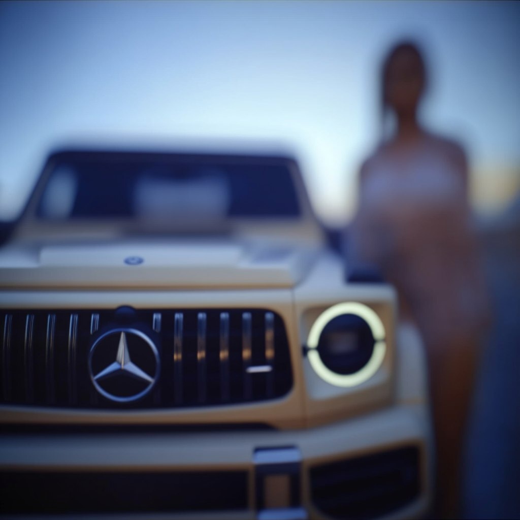 Создано на основе запроса: 2025 mercedes amg g63, beautiful woman pose portrait beautiful eyes looking at camera