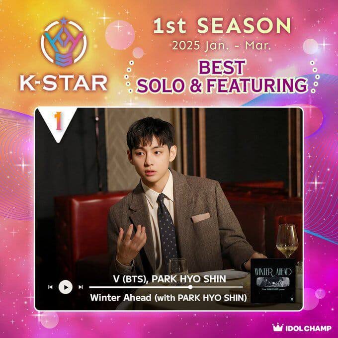 🔮 Песня Ви "Winter Ahead (feat. Park Hyo Shin)" победила в номинации "Лучшее соло и совместное исполнение" на K-Star Chart 1-го сезона.