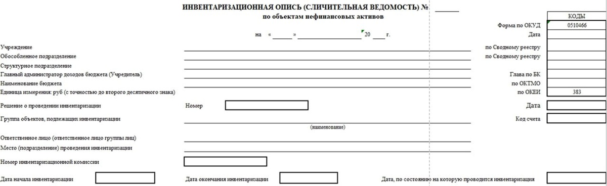 Инвентаризационная опись по объектам нефинансовых активов (ф. 0510466) Заголовочную часть и раздел 1 формирует бухгалтер на основании решения о проведении инвентаризации. Остальные разделы формируют члены комиссии, кроме раздела 3 «Объяснение причин расхождений» - его должен заполнять ответственный за сохранность сотрудник, если были выявлены расхождения. Разработка учётной политики для учреждений госсектора https://buhgov.ru/