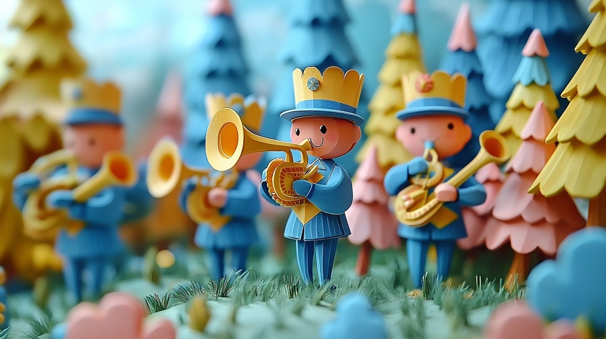 Создано на основе запроса: colorful marching band on a field on a sunny day