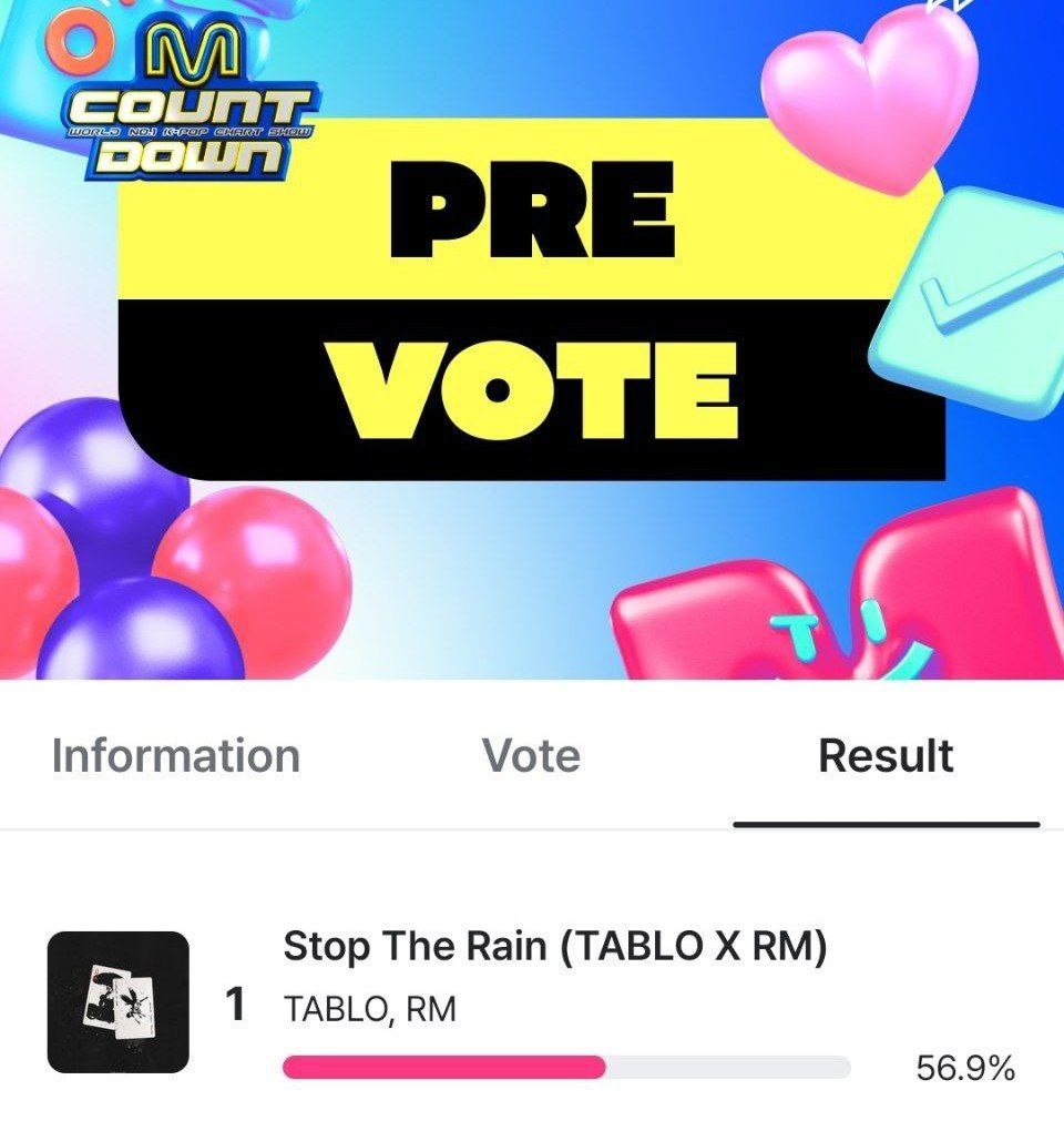 🍥 "Stop The Rain" Намджуна и Табло номинирована на предварительное голосование M Countdown