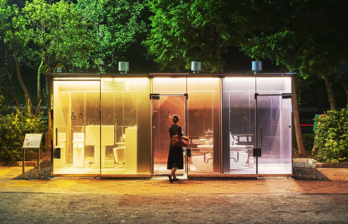 Ещё один туалет со стеклянными стенами (и приспособленный для людей в инвалидных колясках) находится в токийском районе Томигая. Благодаря прозрачности, спроектированной архитектором Сигэру Баном, пользователи могут быть уверены в чистоте (и в том, что внутри никого нет) ещё до того, как откроют дверь. Но не волнуйтесь: специальная технология делает стены непрозрачными, как только вы запираете дверь кабинки изнутри, а ночная темнота в некоторых общественных туалетах рассеивается благодаря тому, что всё помещение освещается ночью. Этот инновационный подход к общественному удобству является частью инициативы под названием TOKYO TOILET, цель которой — сделать так, чтобы каждый мог найти и использовать туалет с комфортом и уверенностью, начиная с нескольких креативных и доступных туалетов, расположенных в районе Сибуя в Токио.