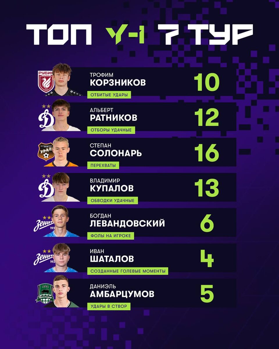 Смотрим на индивидуальные показатели пацанов за седьмой тур 👀