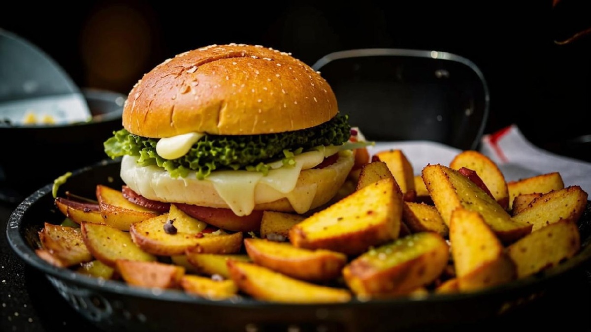Представь: ты заходишь в кафе. Запах жареной картошки бьёт в нос, как волна в океане — хрусткие ломтики шипят во фритюре, золотистые, как загар Рианны. Рука сама тянется к карману за деньгами... Стоп. А теперь перемотка. Тот же фаст-фуд, но в твоей версии: булочка из полбы пахнет орехами, котлета сочна, как спелый персик, а вместо майонеза — йогуртовый соус с укропом, холодный и свежий, как утро после дождя. Хрустишь — и слышишь, как хрустят огурцы, а не сухари из пакета. Это не еда, это симфония.
