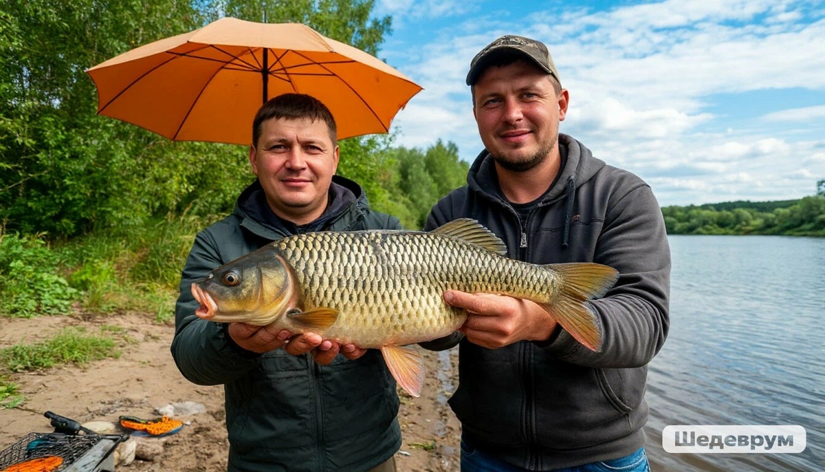 Как червяк, зонт и сазан сделали нашу рыбалку незабываемой Привет, рыбаки и любители природы! Сегодня расскажу вам историю о том, как мы с другом Андреем побили личный рекорд на майской рыбалке. Всё началось 2 мая 2025 года на реке Воронеж, в месте её впадения в Дон. Эти места в мае — настоящий «рыбацкий мегаполис», но нам повезло найти свой уголок… или почти повезло? В 17:00 мы стартовали к заветному месту, но… берег уже напоминал парковку супермаркета в час пик. Машины, палатки, рыбаки на каждом «пятачке». Проехав 1,5 км вдоль берега, нашли тихий уголок, защищённый холмом и деревьями. Идеально: ветер (а он был жуткий!) нас почти не доставал. Лайфхак для рыбаков: используйте естественный рельеф! Холмы и кусты — ваши лучшие други в ветреную погоду. Первыми забросили донки (помним про нерестовый запрет: одна снасть, один крючок!). Карась клевал вяло: редкие «тычки» раз в час. Но тут начался дождь… Спасение — огромный пляжный зонт! Под ним ум