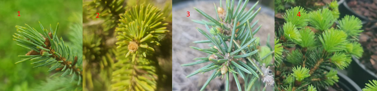А вот на картинке 3-4 - состояние почек елей, которые прислали мне из европ. Там весна начинается значительно раньше, и приезд в Россию работает как машина времени, отбрасывающая елки назад. Их медленное распускание в такт польскому или хуже того голландскому климату разбивается о психозы природы средней полосы, и в таком виде хвойные перестают быть бессмертными.