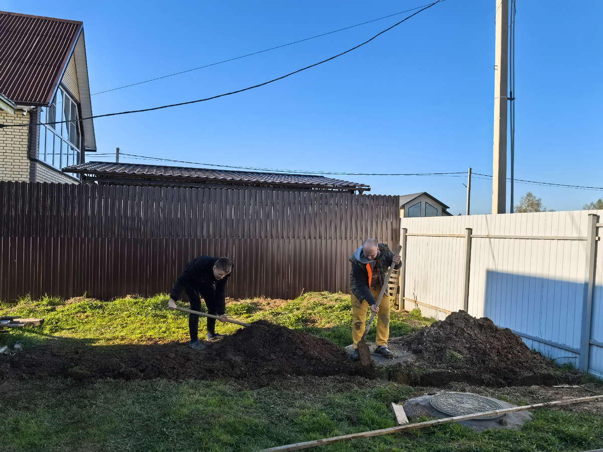 Дорогой читатель, ну что сказать, мы сделали это!!!))) Сегодня погода над нами сжалилась , и позволила доделать в колодце соединение труб между двумя домами👨🔧Как писала ранее, проблему с разными уровнями вывода из колодца, решили два уголка и кусочек трубы. Далее начали подготавливать траншею для трубы, из которой будет сбрасываться вода: Присоединили вывод к трубе через которую сливался умывальник в кухне, сейчас там остался умывальник, но классический-дачный, с ведром внизу 😄: Уклон делали на глаз, проверили с помощью баклажки воды, слив отлично заработал🙌: Пока засыпали трубу, позвонила долгожданная доставка, и вот уже мою ненаглядную несут домой: Конечно не без приключений, резьба у шланга машинки не подходила к трубке подачи воды, все магазины уже были закрыты, а мне нужно было попробовать постирать вот срочно, как это водится у женщин) Несколько часов поисков и добрый сосед по посёлку нашел нужный переходник: Машинку взяла на страх и риск китайскую, о ней своё мнение сложу ч