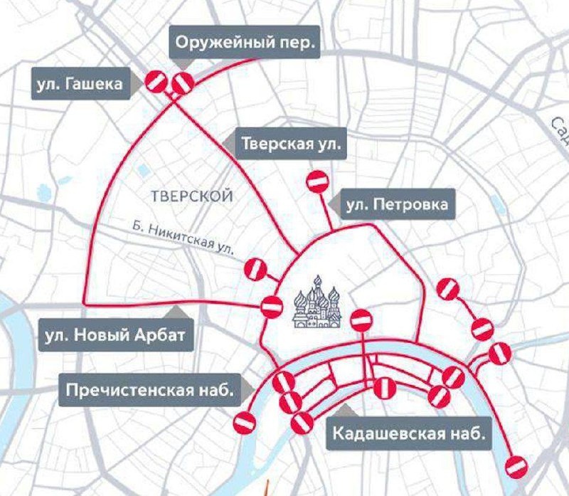 Крупные перекрытия в центре и на юго-востоке Москвы будут завтра из-за репетиции парада Победы