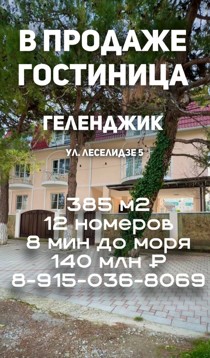 В центре Геленджика, до моря 8 мин пешком! 💼 Продаётся готовый бизнес — идеальное решение для тех, кто мечтает о доходе у моря! 🌊 🏠 Гостевой дом 385 м² на участке 2,2 сотки земли. ✨ Полностью после капитального ремонта — ничего доделывать не нужно 🔹 12 комфортных номеров с личными санузлами 🔹 Отдельные апартаменты для хозяев 🔹 Кухня для гостей и жильё для персонала 🌴 На участке: бассейн, зона отдыха, летняя кухня под навесом, мангальная зона 🚗 Много парковочных мест — удобно и практично 📍 Все центральные коммуникации: газ, вода, свет — уже подключены 📞 Звоните! Быстрый показ, документы готовы ⠀ 140 млн ₽.