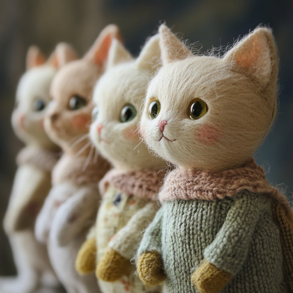 Создано на основе запроса: little kitten dolls lined up in a row --- Автоперевод: куклы маленького котенка выстроились в очередь подряд Как тебе такое изображение? 🤔 https://dzen.ru/id/65c0c65c86e4f837c27b24d7 #ИИ #AI #нейросеть #midjourney #art