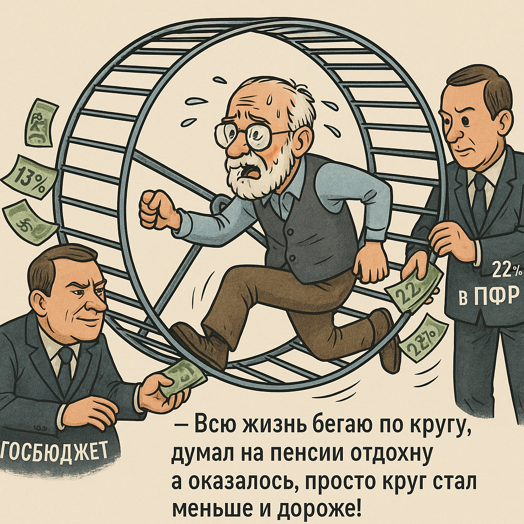 Работающих пенсионеров в России немало: по данным Социального фонда России (бывшего ПФР) их 7,85 млн человек, то есть каждый пятый пенсионер продолжает трудиться. Казалось бы, люди уже заработали свою пенсию, но государство не спешит освободить их от поборов. Напротив, с зарплаты пенсионера исправно удерживается подоходный налог 13% (НДФЛ), а работодатель за него платит еще 22% в Пенсионный фонд. Выходит забавная ситуация: пенсионер одновременно получает пенсию и продолжает пополнять казну, будто у него впереди еще долгая карьера. Разберемся, почему так и сколько денег на этом теряется – с долей иронии о социальной справедливости.