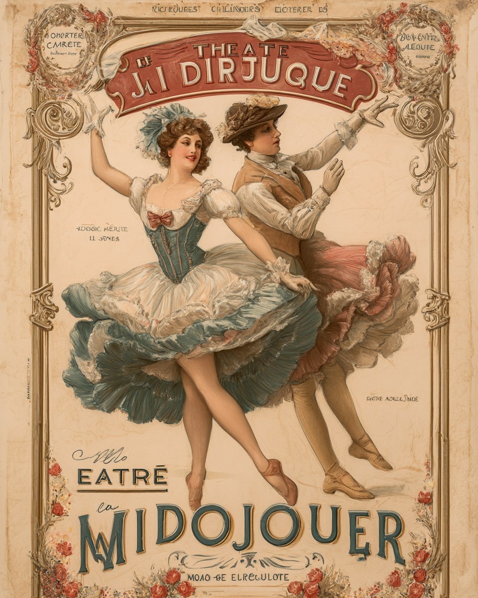 Создано на основе запроса: vintage French belle epoque poster "Theatre de l’Midjourney" with can can dancers