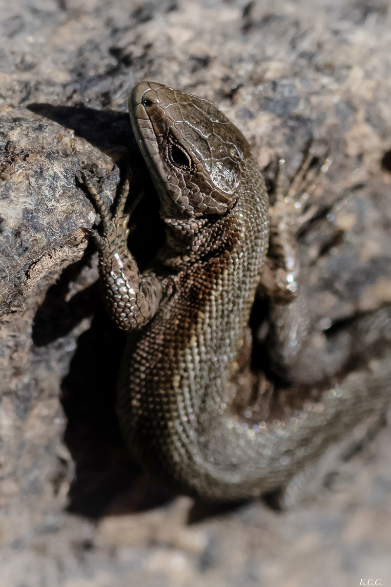 Сегодня, гуляя по лесу вместе с Женой, мы решили сделать небольшую передышку у канала. Тёплый ветер, свежий воздух, пение птиц — всё располагало к отдыху. Берег здесь усыпан крупными булыжниками, нагретыми весенним солнцем. Мы устроились на камнях, чтобы немного охладиться после прогулки. И вдруг — встреча, как по заказу. На одном из камней, словно хозяйка солнечного тронного зала, грелась ящерица. Стройная, покрытая изумительно детализированной чешуёй, с выразительными глазами и ловкими лапками — она будто знала, что станет героиней нашего дня. Конечно же, я не смог удержаться и сделал несколько кадров. Но кто же эта загадочная красавица? Это — живородящая ящерица (Zootoca vivipara), один из самых удивительных видов, обитающих в наших широтах. В отличие от большинства пресмыкающихся, она… живородящая! Да-да, вместо откладывания яиц, как делают большинство её родственников, она рождает уже полностью сформированных детёнышей. А всё дело в климате. Этот вид эволюционно приспособился к