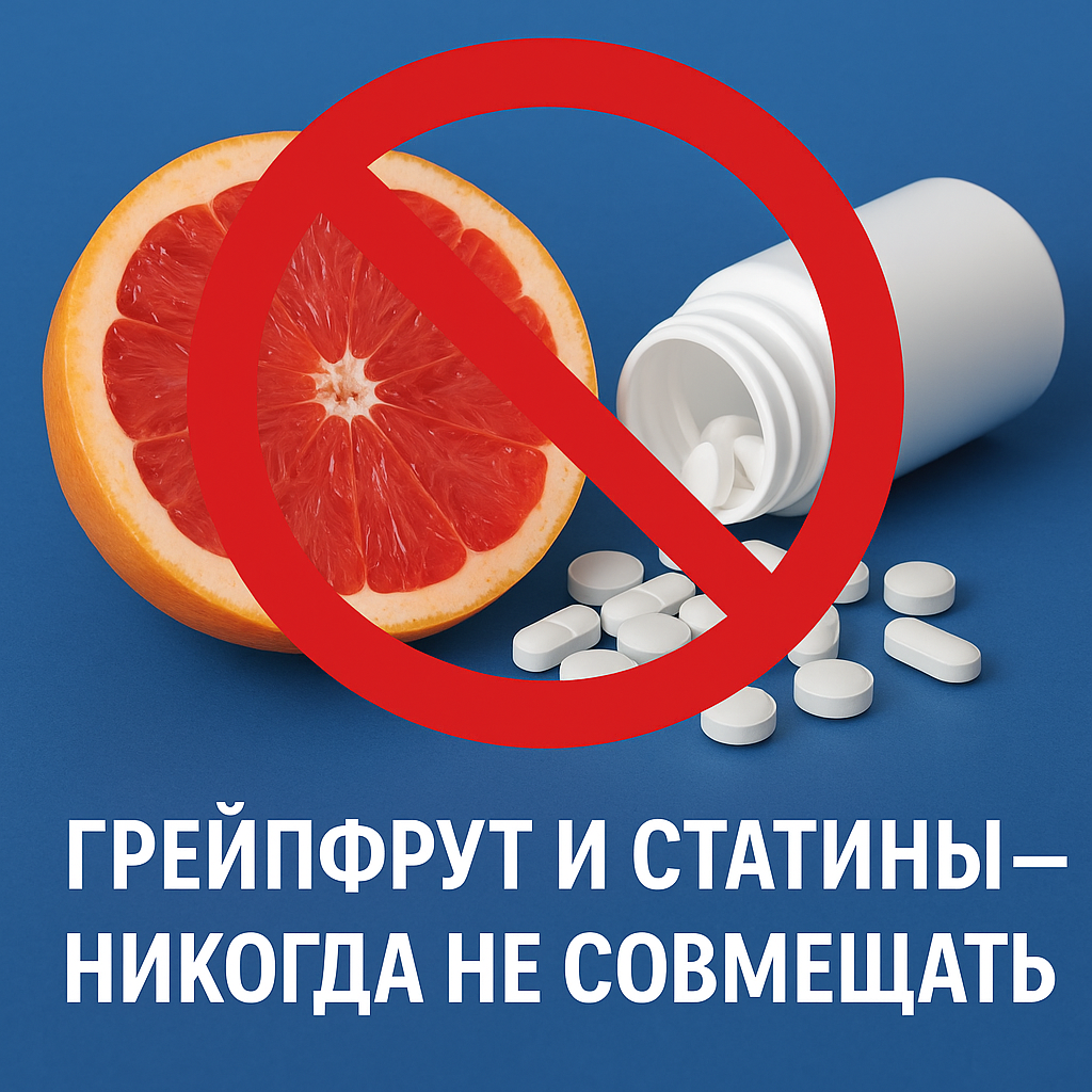 На первый взгляд — полезный фрукт. Освежает, насыщает витамином C, помогает "сжигать жир" и бодрит. Грейпфрут — любимец ЗОЖников и тех, кто решил взяться за здоровье всерьёз. Но вот парадокс: именно этот цитрусовый может сыграть злую шутку с теми, кто принимает статины — препараты, снижающие уровень холестерина. И речь не про временное недомогание. Комбинация грейпфрута и статинов способна вызвать серьёзные побочные эффекты — вплоть до разрушения мышечной ткани и поражения почек. Почему так? Сейчас разберёмся просто и по-человечески. Статины — это лекарства, которые подавляют выработку холестерина в печени. Их назначают при: То есть это препараты, которые реально спасают жизнь. Но как и у всех мощных средств, у них есть свои «не дружи со мной» продукты. И в этом списке грейпфрут — номер один. В грейпфруте содержатся вещества — фуранокумарины. Они влияют на работу фермента CYP3A4 в печени. Этот фермент помогает организму "обезвредить" и вывести излишки статинов. А если