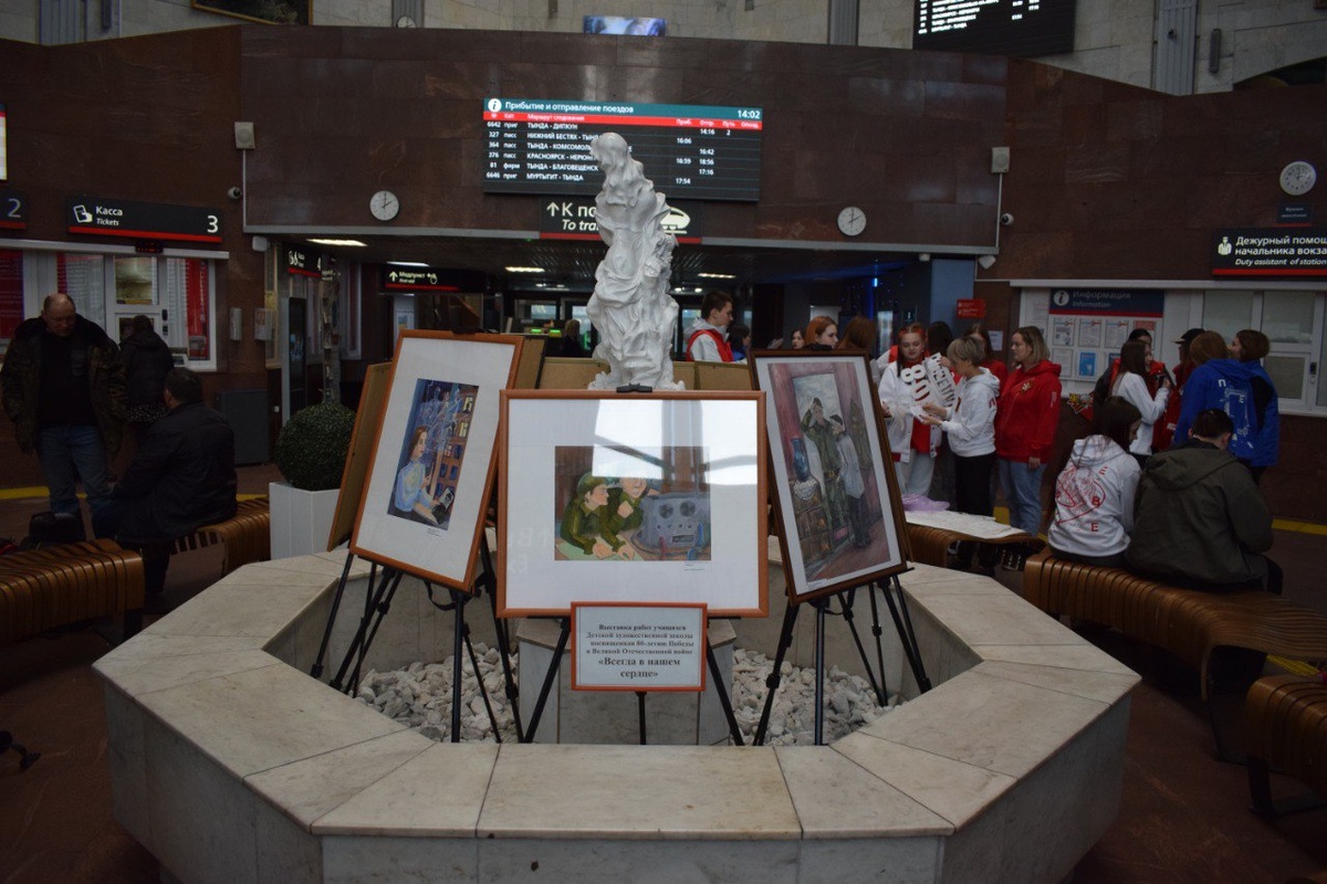 Второй год подряд инициатива Движения Первых помогает сохранять связь поколений, напоминая пассажирам о подвиге наших предков. Тындинский железнодорожный вокзал украсили в преддверии 80-летия Великой Победы. Об этом пишет пресс-служба администрации Тынды. Пространство транспортного узла преобразилось благодаря совместным усилиям работников вокзала и активистов Движения Первых. Стены вокзала украсили детскими рисунками и поделками, создали фотозону. В зале ожидания установили работы воспитанников местной художественной школы. Входную группу вокзала ребята из Движения Первых оформили трафаретами с изображением знаменитого монумента «Родина-мать зовет!» и портретами ветеранов. Белые бумажные голуби, размещенные по всему пространству, стали воплощением мира. Фото t.me/tynda_rf Читать на сайте ТЕЛЕПОРТ.РФ Еще больше новостей в нашем телеграм-канале https://t.me/amurobl