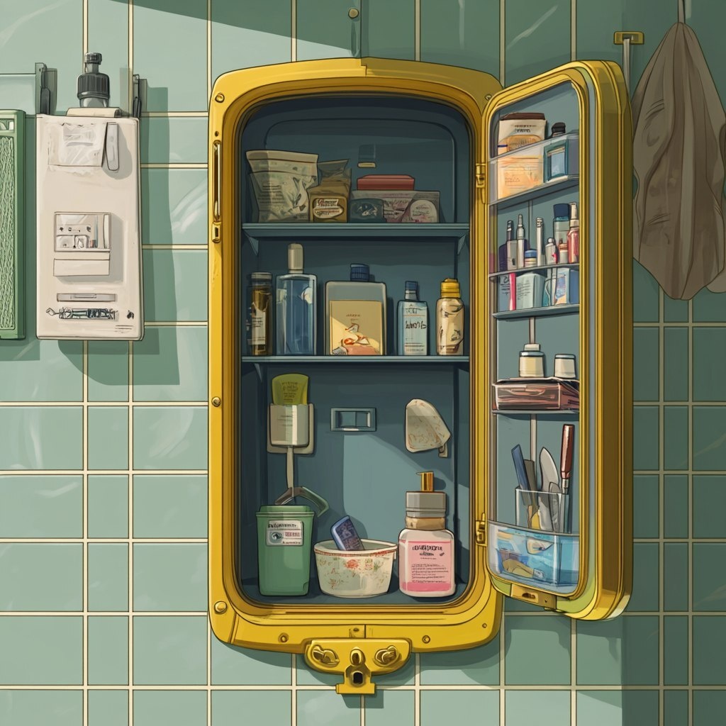 Создано на основе запроса: moder bathrooomdigital illustrator lock, with objects inside