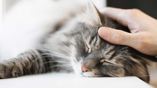 - Прогибание поясницы, подъём таза, отведение хвоста в сторону во время глажки кошки по спине.