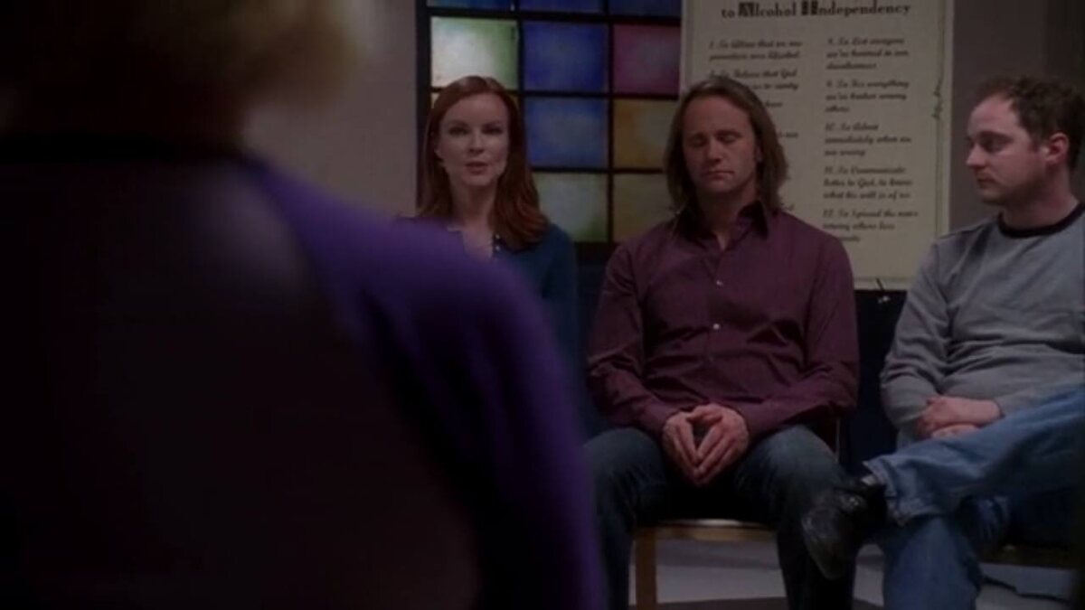 Кадр из сериала «Отчаянные домохозяйки», 2006 год. Упоминаются собрания 12-шаговых программ, таких как АА (Анонимные Алкоголики). Помните такой сериал? Я ещё в школе училась, когда он шел по тв. В 30+ уже куда интереснее смотреть.
