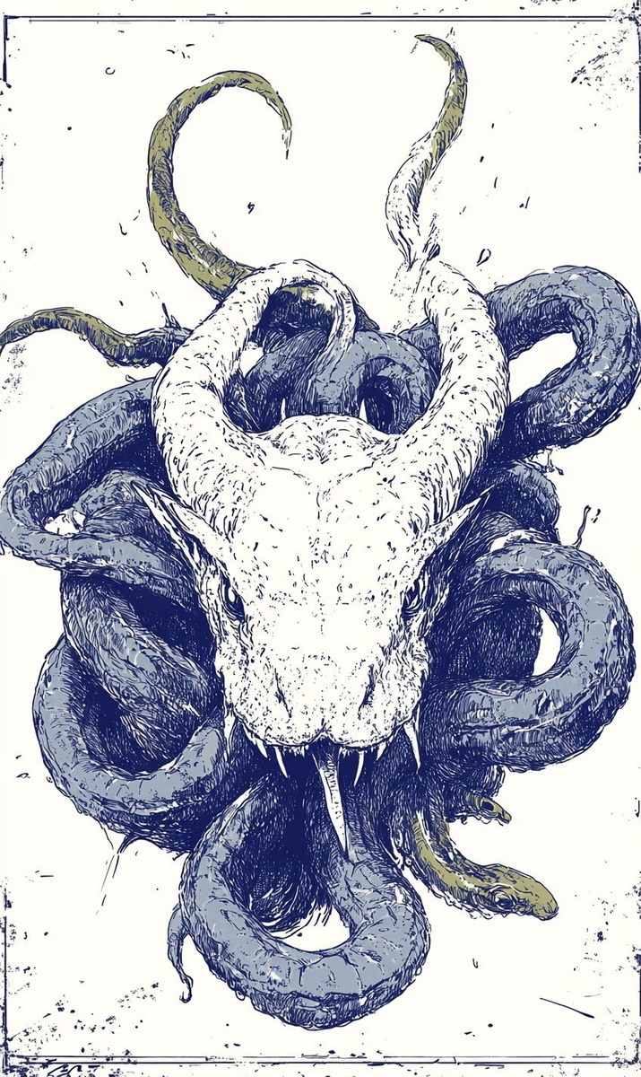 Создано на основе запроса: Playing card back depicting a pile of worms, black white and green, --- Автоперевод: Играя в карту обратно, изображающая кучу червей, черного белого и зеленого, Как тебе эта иллюстрация? 🤔 https://dzen.ru/id/65c0c65c86e4f837c27b24d7 #ИИ #AI #нейросеть #midjourney #art