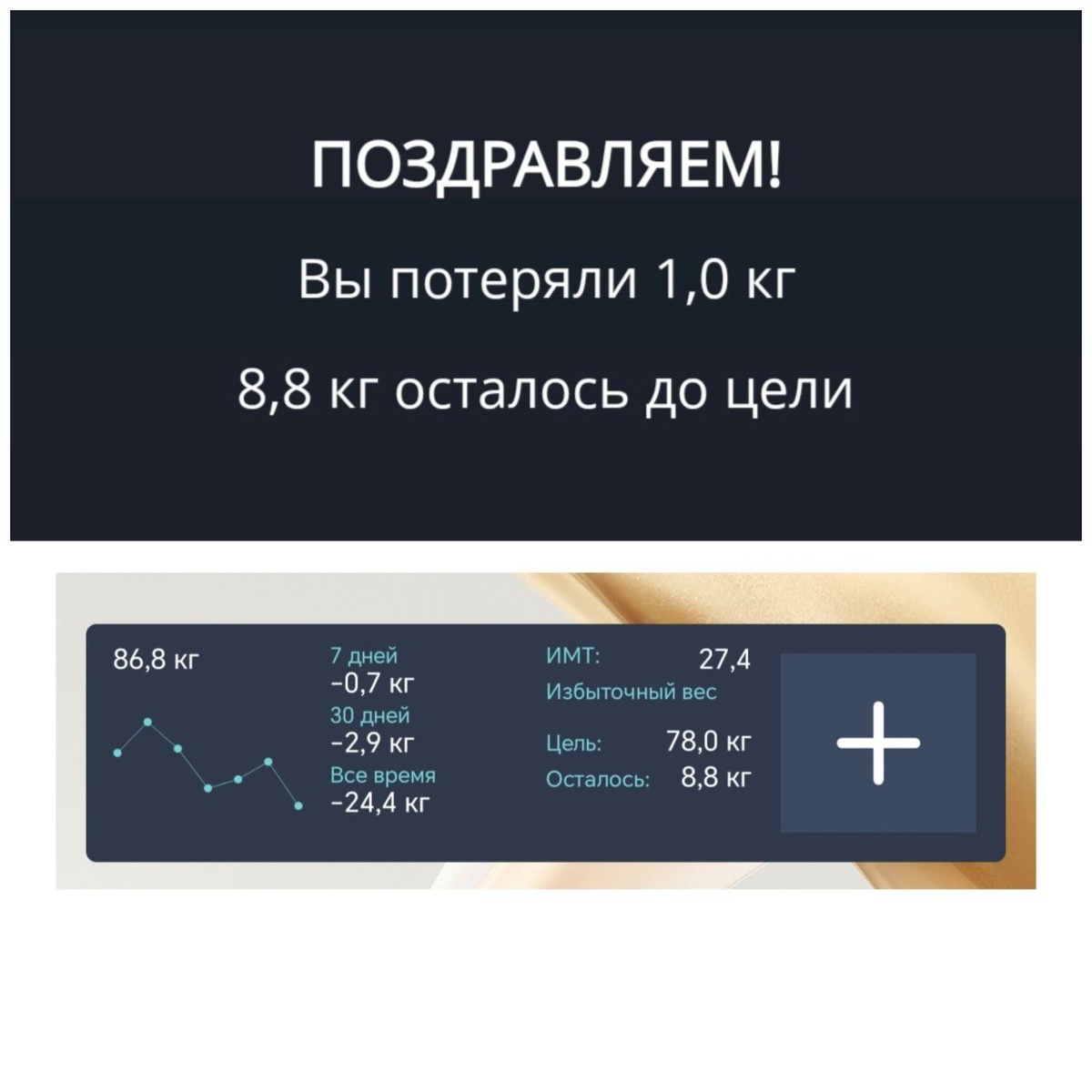 💃 Итоги дня отдыха. 🍔 День похудения: 115 🗓 03.05.25 ⚖️ Вес: 86.8кг ⬇️-1 кг🥳 🎯 Цель: 78КГ ➖ Осталось скинуть: 8,8 кг 💪 Всего скинуто: 24,4 кг ❌Не в норме: Возраст тела: 36 лет ИМТ: 27,4 ⬇️-0,3🥳 Жир(%): 27 % ⬇️-0,3%🥳 Жир(кг): 23,44кг ⬇️-0,53 кг🥳 Белок: 15,3% Вода: 50% ⬆️+0,1 %🥳 Обмен: 1756 ккал ⬇️-14 ккал😱 Висцеральный жир: 12 ✔️В норме: Мышцы: 60.2кг ⬇️-0,5 кг😱 Скелетные мышцы 40.9 % (35,5кг) ⬇️-0,23 кг😱 Кости: 3.2 кг 🤔 Выводы: (не забудьте развернуть бокс снизу, нажав на него) 🔸 Активности за вчера почти не было. День отдыха всё-таки... 🔸 Вес сильно ушел. В равных долях жир и мышцы. 🔸 Сегодня день усиленных тренировок. 🔸 Чувствую себя вроде нормально, ничего не должно помешать мне выполнить тренировку. 🔸 На улице снова светит солнце, по прогнозу +9, чуть позже пойду гулять собак посмотрю как там по ощущениям. 🔸 План на утро: Завес, Кофе, Упражнения. 🔸 Спал сегодня 5 часов 37 мин. Вчера забрал жену у подруги и очень поздно приехали домой, хорошо хоть да