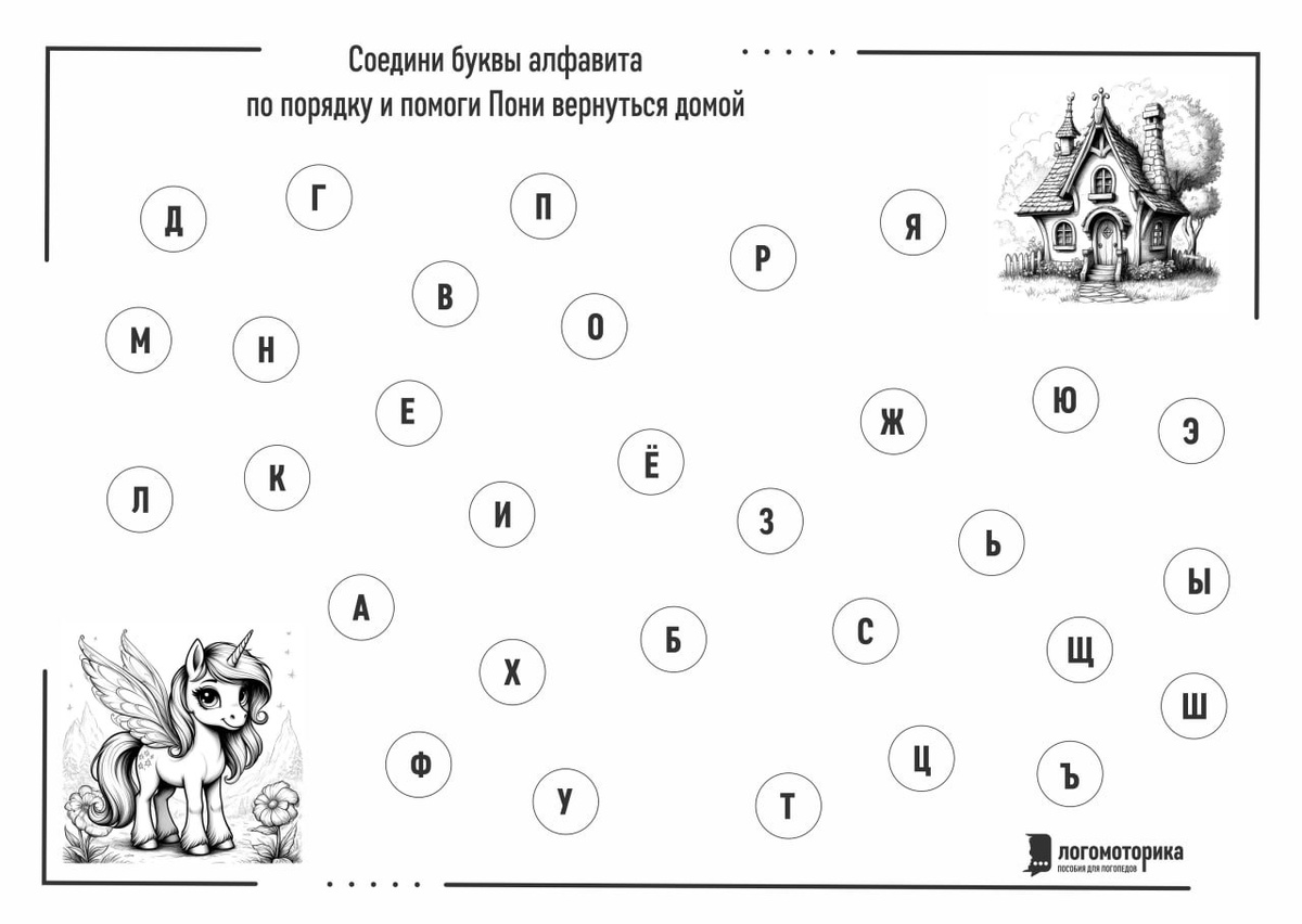 Повторяем последовательность букв в русском алфавите с милашкой Пони и Трансформером (если ребёнок не любитель милашей).