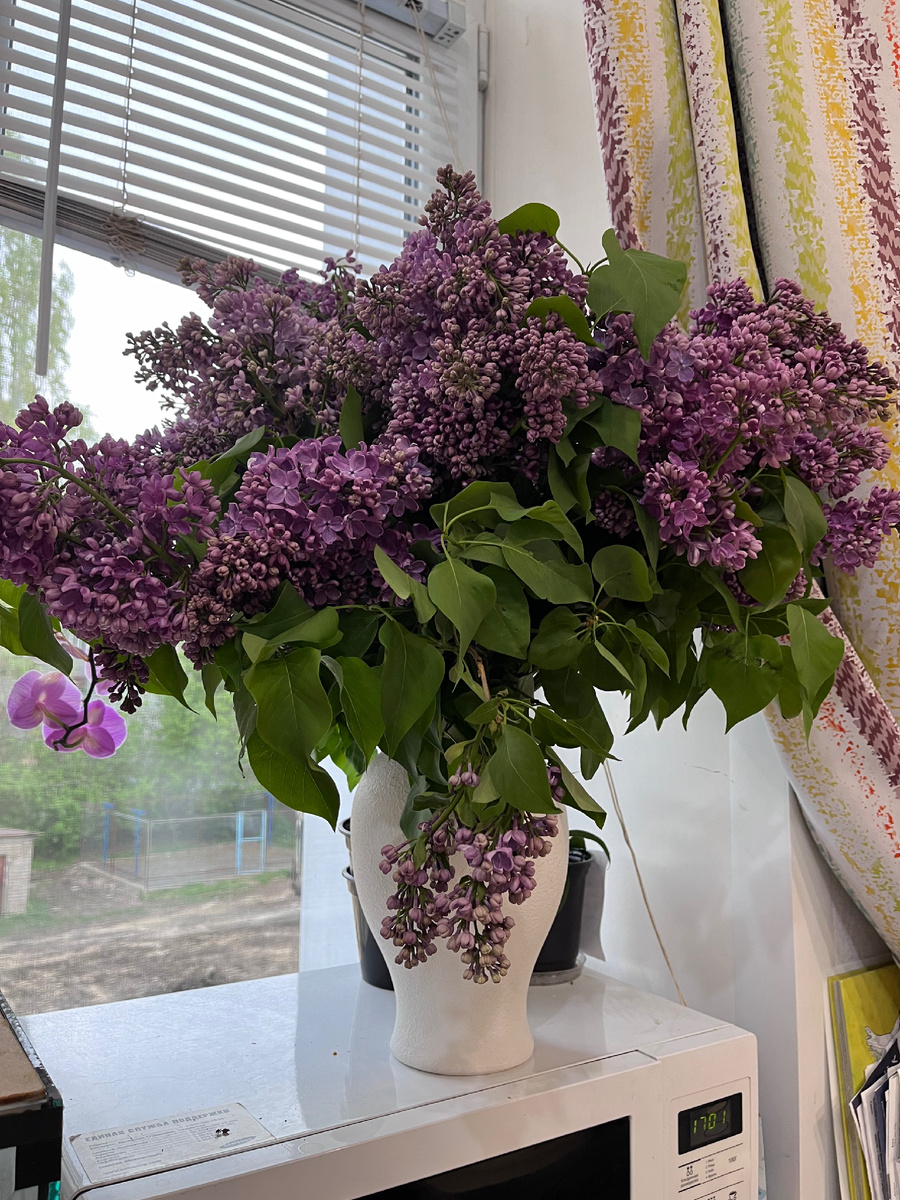 • Для сирени лучше всего подойдет высокая ваза с широким горлышком. Тут я попала в цель, у меня дома одна ваза и кажется она создана для сирени.