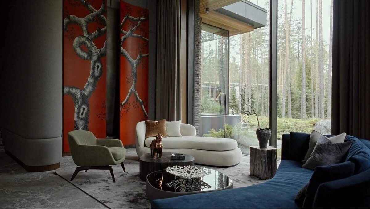 Реализованный интерьер загородного дома с зимним садом в Репино.