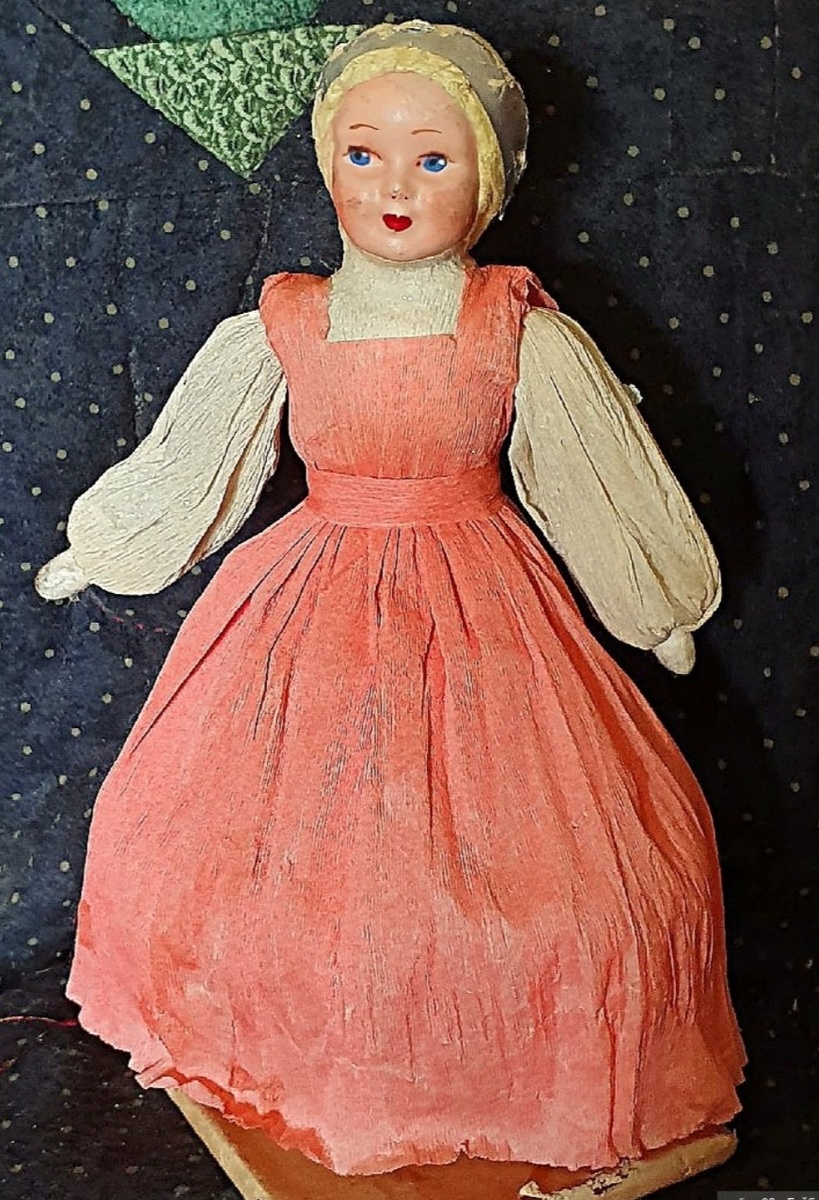 Молд из пресс опилок и роспись идентична предыдущим куклам.