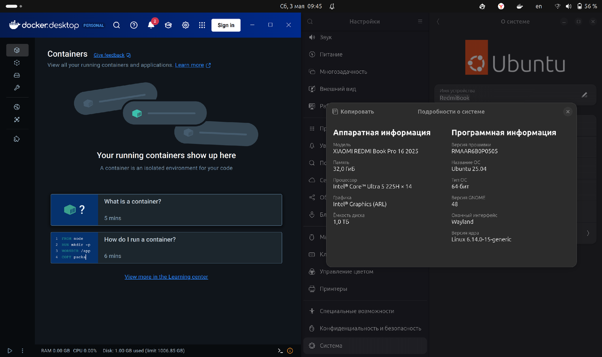 🐳 Установка Docker Desktop на Redmi Book Pro 16 (2025) с Ubuntu 25.04 — путь бойца