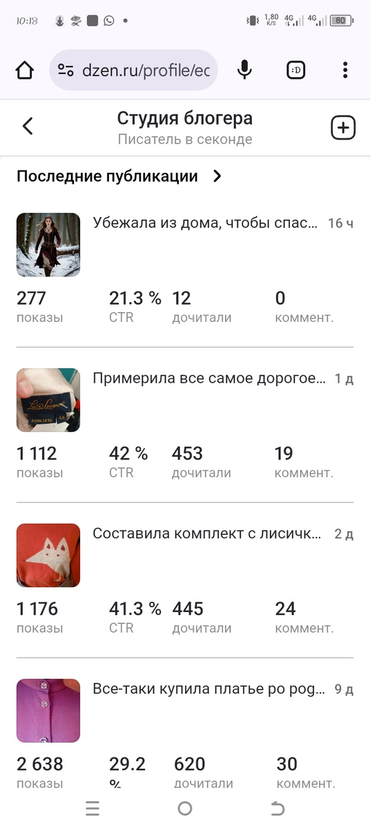 Всем добра. Как-то сейчас с дзеном у меня совсем не заладилось. Они постоянно вводят новые правила. В результате из 7300 подписчиков канала (где они все?), мои статьи видит только 1000 человек. Точнее нет, не так. Дзен дает 1000 показов, не больше. И из них половина смотрит мои статьи. Раньше были понятные правила на дзене - и к заголовкам и к статьям и к стоп словам и даже к темам. Сейчас не понятно ничего ровным счетом. И не знаешь, то ли бросать блог совсем (5-10 руб в день, ага), то ли переводить на формат - пусть все идут в вк и тг (чего дзен, наверное, и добивается), то ли уходить на другие темы (какие?) Раньше я четко знала, что поиграюсь с темами и какая-нибудь, да выстрелит. Сейчас же вообще нет никакой уверенности в этом. Дзен медленно идет на дно. Вот думаю, может хейтеров разбанить? Может они набегут и станет больше времени дочитывания статей? Ммм? Кто так делал, отзовитесь? Не могу же я быть единственным блогером на дзене))) А какие темы были бы интересны людям, на ваш взг