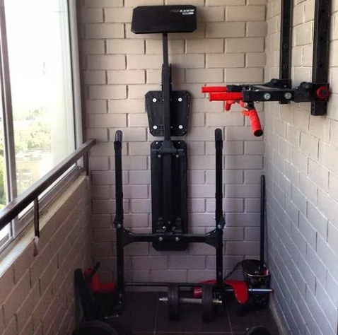 Даже самый скромный балкон можно превратить в мини-зал: постелите коврик, поставьте колонку — и уже готово. Пример: