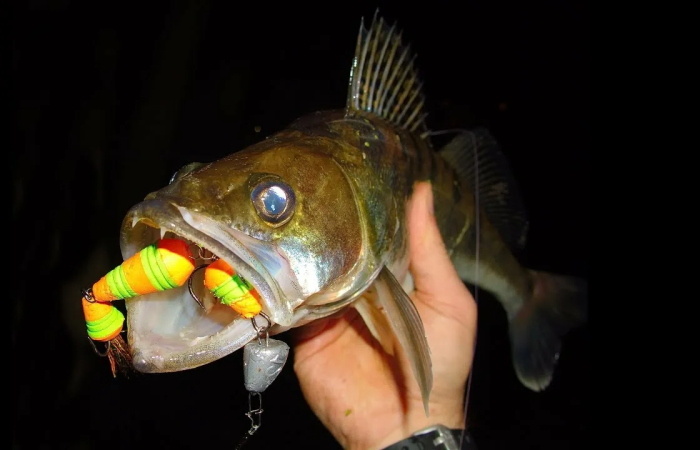 Используйте яркие цвета. Мандулы с яркими элементами (красный, оранжевый, жёлтый) лучше привлекают внимание судака, особенно в мутной воде.